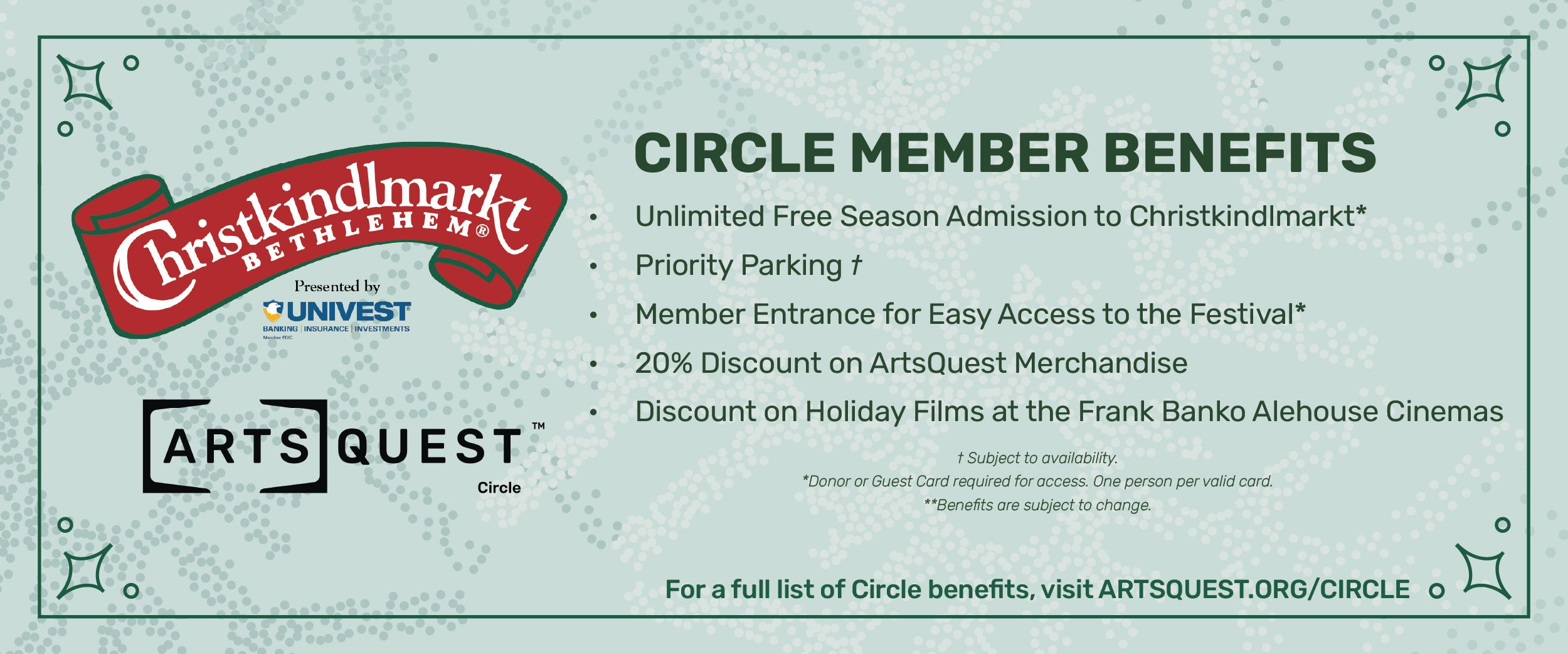 As a thank you for their generous support, ArtsQuest Circle members receive:
