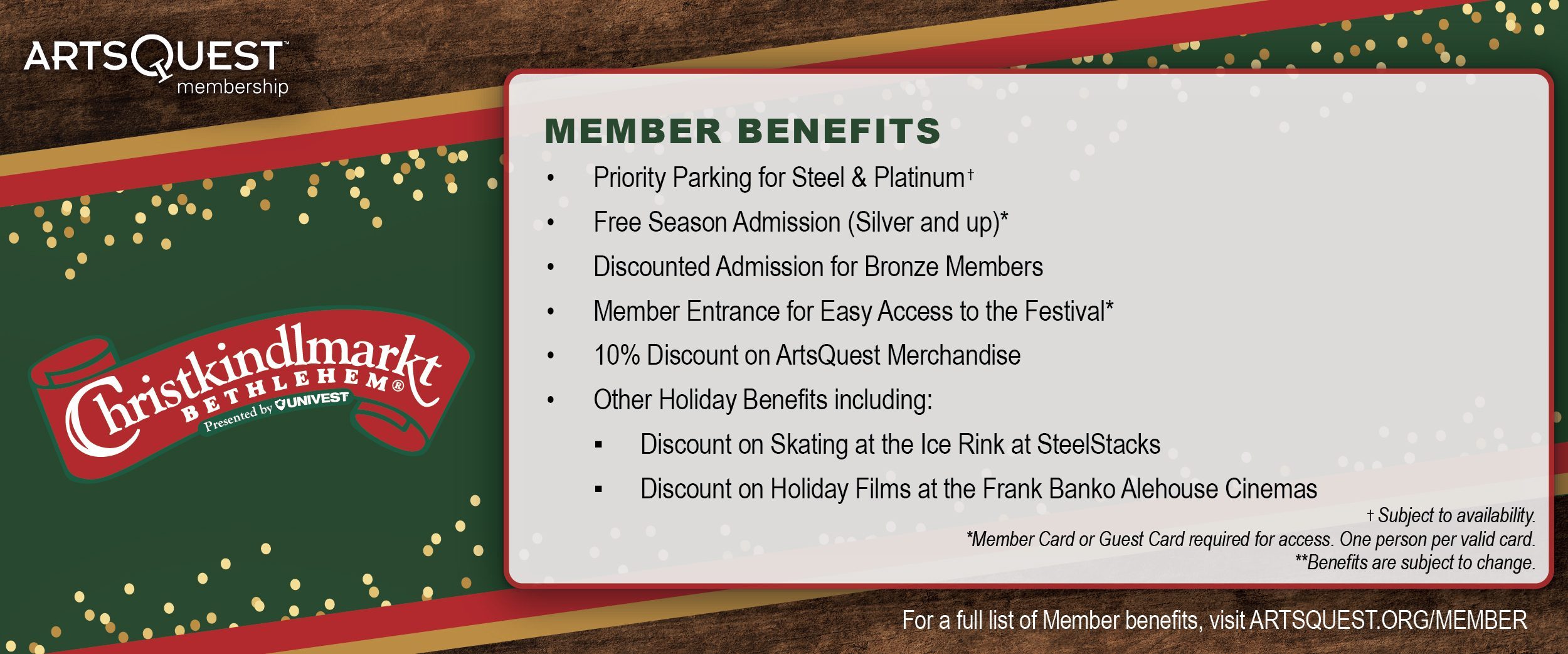 ArtsQuest Members (Silver and up) receive free season admission with their membership, along with year-round benefits. Find out more and join as a Member today at artsquest.org/member.